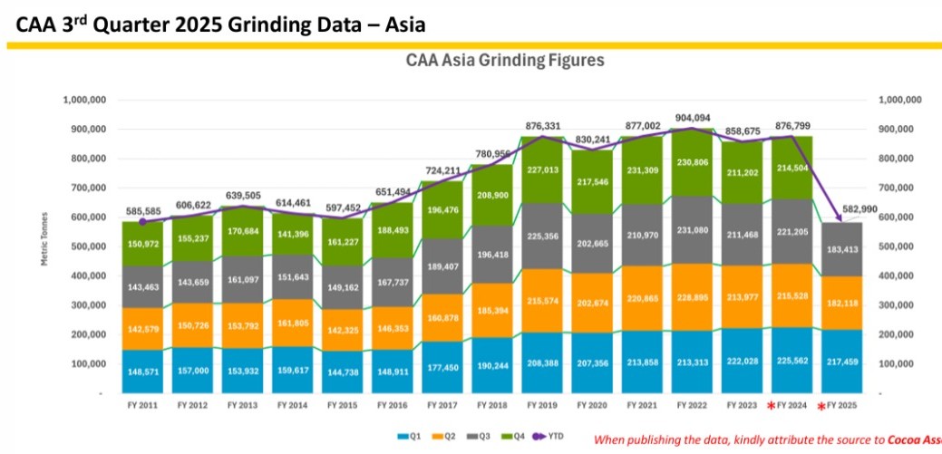 Os números da CAA são considerados um dos principais termômetros do consumo de cacau no Leste Asiático e Oceania, região que concentra importantes polos de refino e exportação de derivados industriais.